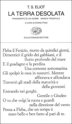 Un'opera molto, molto complessa, questo celebre poema dell'anglo-americano Eliot (1888-1965) che venne pubblicato per la prima volta nel 1922, al principio di un drammatico dopoguerra già carico di cattivi presagi. La "terra desolata" (o "devastata", secondo una più recente traduzione dell'aggettivo "waste") è infatti il vecchio continente uscito dallo shock e le atrocità del primo conflitto mondiale; non meno “desolata” apparirà ritratta la Londra dell’epoca con le sue atmosfere decadenti e un Tamigi da cui le ninfe sono ormai partite.